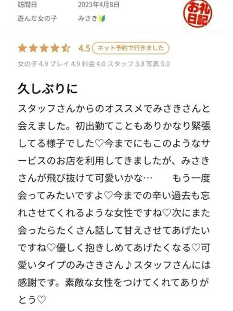 我衷心感谢美咲先生选择了我们的店。